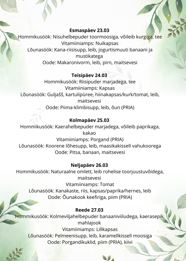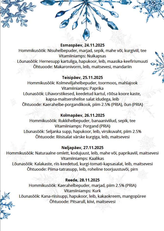 MENÜÜS VÕIB TULLA MUUDATUSI.