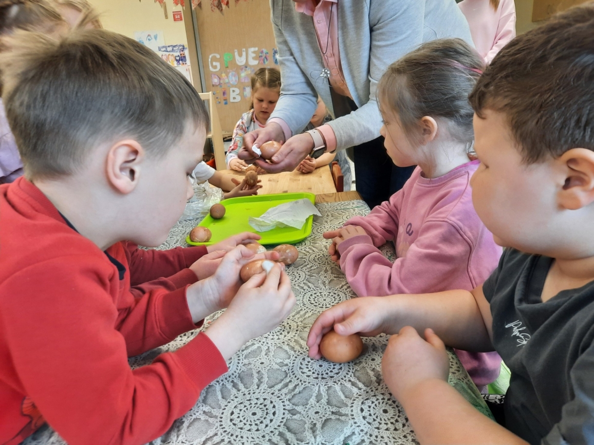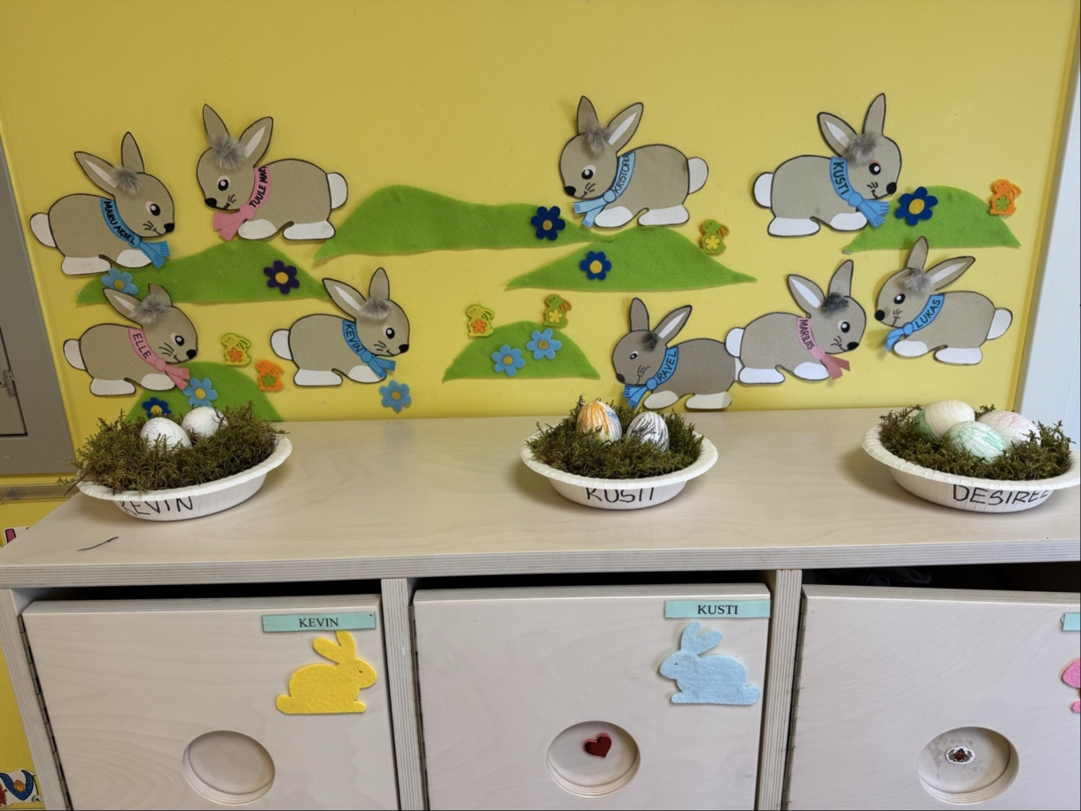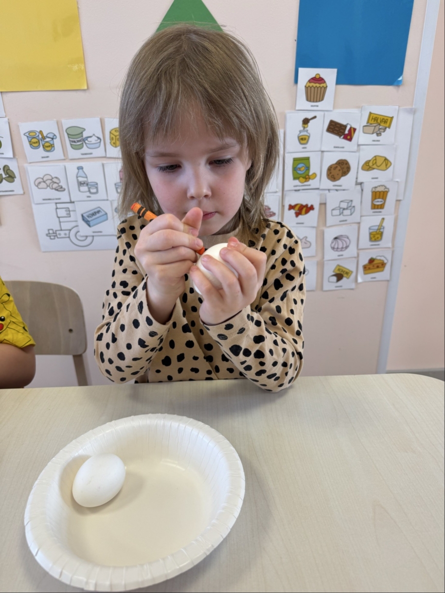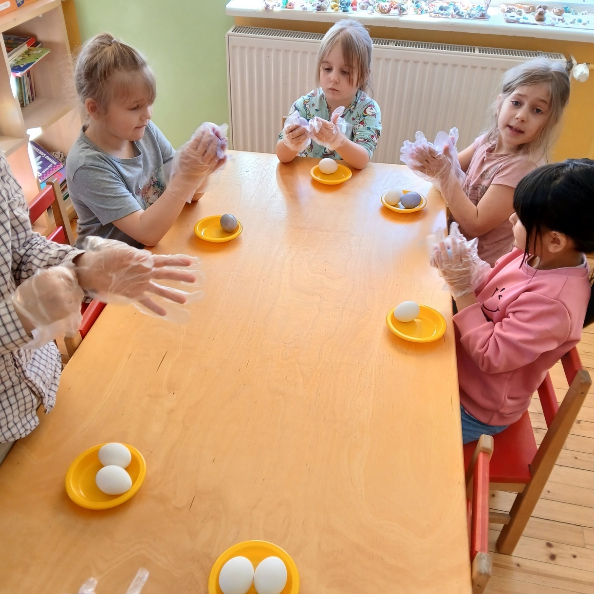 Eriliselt põnev oli sibulakoortega munade värvimine. Pühadenädalal toimus ka õppekäik Kaja koju kanu vaatama. Toideti kanu, tehti neile pai ning viidi lasteaias kasvatatud muru kanadele külakostiks ja rõõmsaks nokkimiseks. Õues viis õpetaja Katrin läbi lõbusa katse munade, värvide ja soodaga. Kõik lapsed said ise mune värvida ning katses aktiivselt osaleda. Nädal oli täis elevust, pärimust ja vahvaid avastusi!