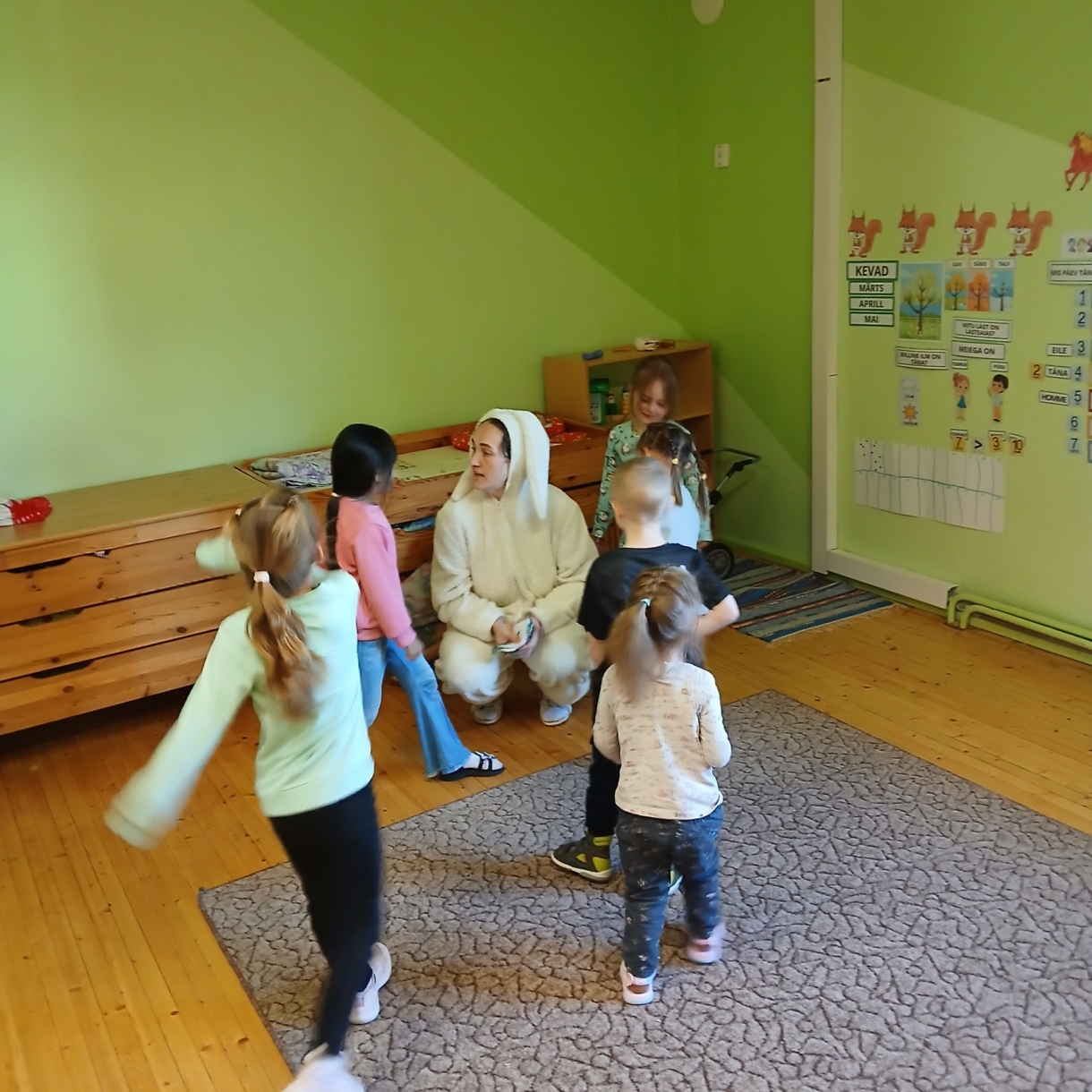 Pühadenädalal käis külas ka väike jänkuke, kellega koos otsiti aaret. Alustati rühmast ning lõpetati otsingud õues. Igas punktis tuli täita ka väike ülesanne, mis tegi aardejahi eriti lõbusaks ja liikuvaks.