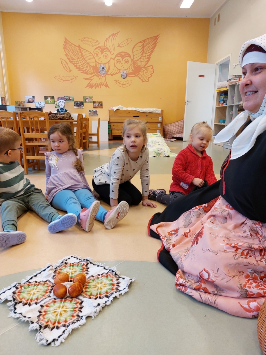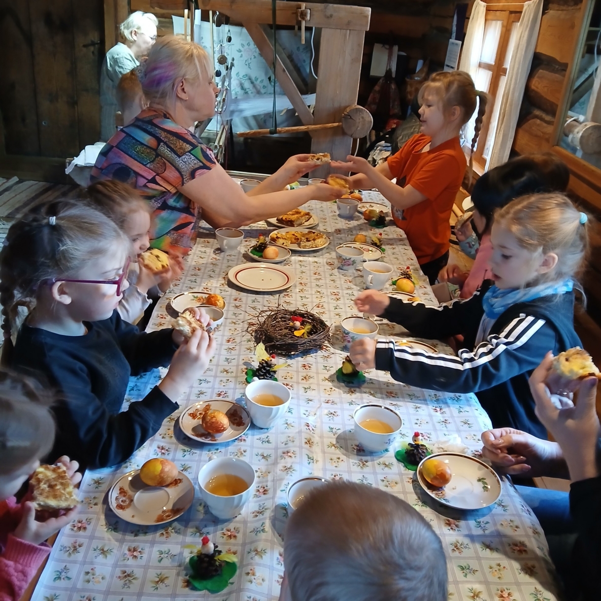 Külastati lihavõtteprogrammi „Lihavõtte lugu Setomaal“ Värska Talumuuseumis. See oli väga põnev ja elamusterohke päev. Koos küpsetati pirukat, värviti mune, meisterdati tibusid ning saadi osa mitmetest teistest vahvatest tegevustest. Hiljem sai munaloomakal mune veeretada ning uudistada talus loomi, mis pakkus lastele palju rõõmu ja avastamist.