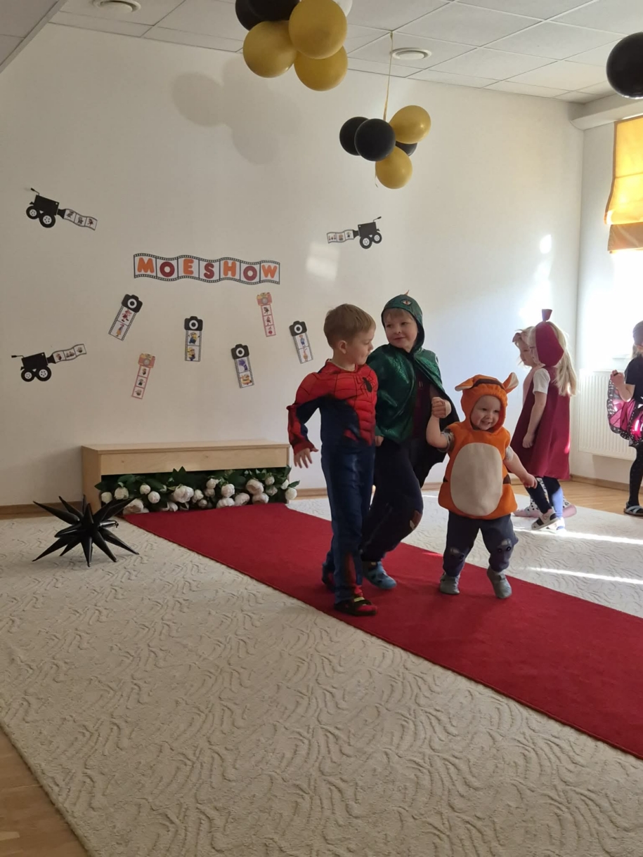 Meie lasteaia erinevates tegevuskohtades toimus vahva moeshow, kus lavale astusid multikategelased, printsid ja printsessid ning erinevad muinasjututegelased. Lapsed said näidata oma toredaid kostüüme ning nautida rõõmsat ja mängulist koosolemist.