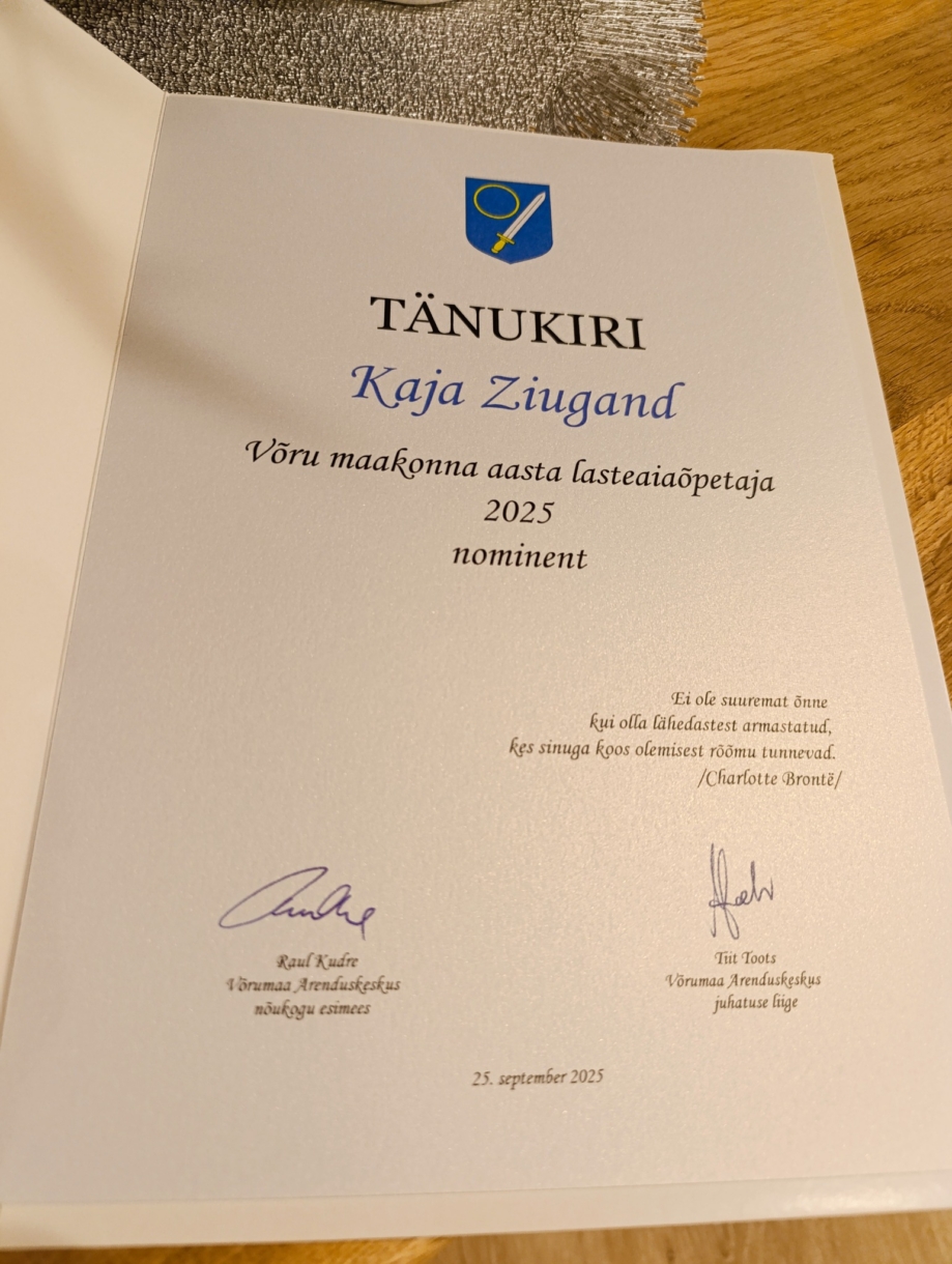 Meil on hea meel ja suur uhkus teatada, et Võru maakonna Aasta Lasteaiaõpetaja nominendiks oli Kaja Ziugand Setomaa Lasteaiast!